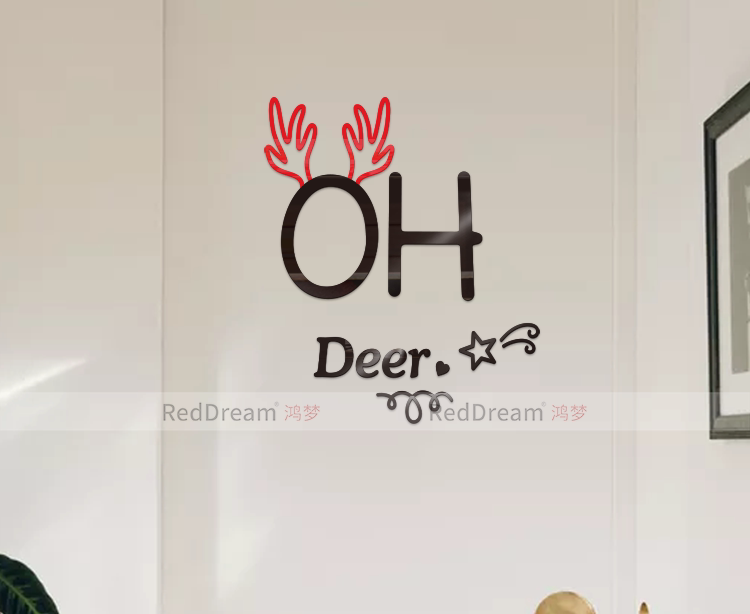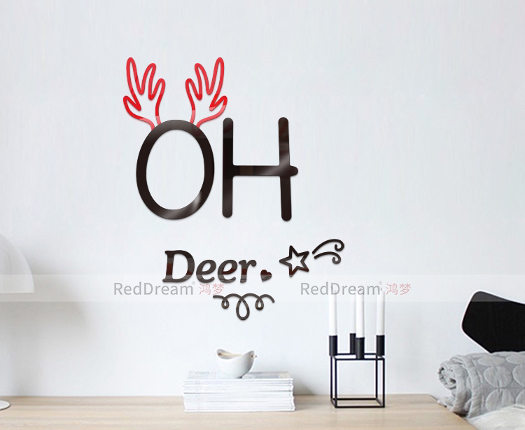 创意鹿角OH英文圣诞节3D立体亚克力客厅卧室门创意装饰背景墙贴画