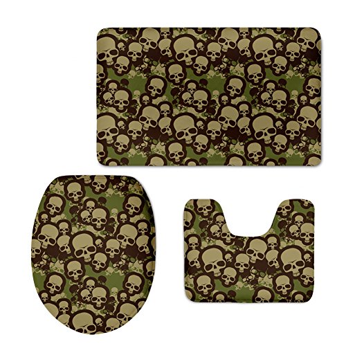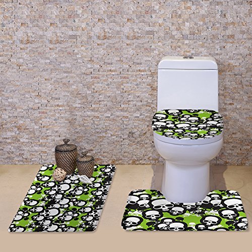 Bigcardesigns Fashion Skull Bathroom Anti-Slip Mats Toilet Seat Cushion Set
