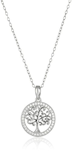 -. Title : Sterling Silver 18mm Cubic Zirconia Family Tree of Life Pendant Necklace, 18"