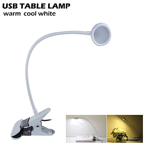 Lemonbest Flexible Eye Care LED Desk Lamp Dimmable Reading Study Lamp, 2 Level Brightness and Warm Cool white Color Control USB/AC 85V~265V Power (White)