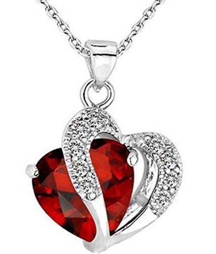 Necklace has a faux silver red heart pendant with cubic zirconia stone. Approximate Value $20. Ultra Romance
