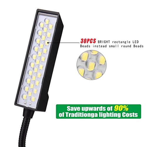- ※【MULTIPURPOSE LED SEWING MACHINE LIGHT】: The 30PCS led light is easily attached and removed with its ultra-strong magnetic base. Whether being used on a sewing machine, drill press, lathe, or other metal surface, the light is sure to be secure. In addition, rest assured that the magnet will leave no permanent marks to remove or difficult clamp to detach and best of all no batteries to deal with. Perfect for Home,Industrial Work,Garage,Lathes, Drill Presses,Music Stands,Sewing Machine etc.
