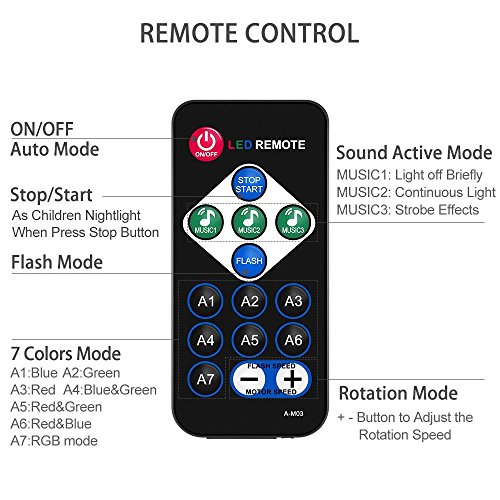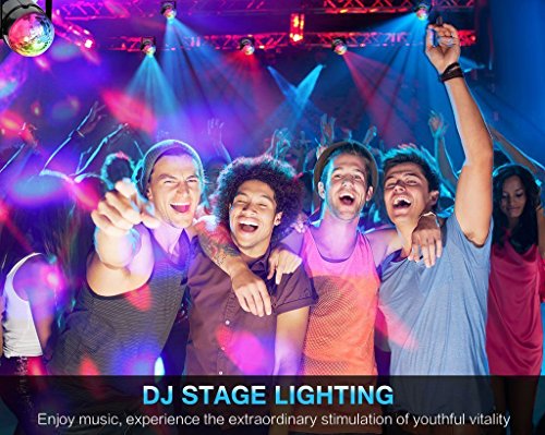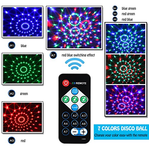 - ♫ Multiple Modes Club Lights: Strobe effects, red,green,blue,red/green,blue/green,red/blue,or all the colors together 7 colors change. Control rotation speed, colors and strobe through automatic control or voice control