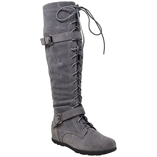-. Title : Generation Y Womens Boots Knee High Block Heels Lace Up Combat Buckle Strap Zipper Closure GY-WB-213