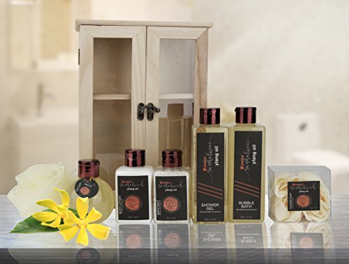 7pc Ylang-Ylang Sandalwood Aromatherapy Spa Gift Set in Wood Cabinet Is your skin in need of some extra TLC? Searching for some unique spa gift ideas?
