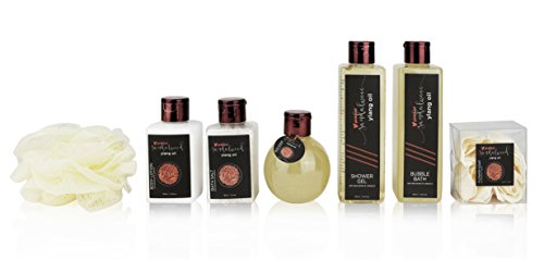 7 PC SPA GIFT FOR HER/HIM: Containing shower gel, bubble bath, body lotion, scrub, a flower soap, bath salts & an exfoliating loofah, these bath & body gift sets include everything needed for a relaxing spa experience.