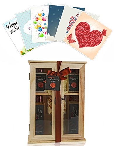 All of the spa gift items featured in this bath & body gift basket are housed in a small wooden box
