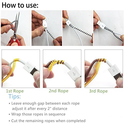 Rancco DIY Wire Protectors/ Cable Sleeves for Charger, Headphone, Data Cable, 50 cm Colorful Universal Spiral Strain Relief Cord Saver(8 Pcs)