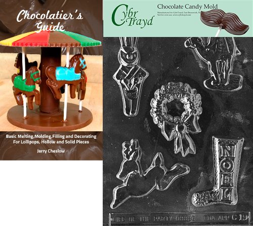 Cybrtrayd 'Assortment with Stocking' Christmas Chocolate Candy Mold with Chocolatier's Guide