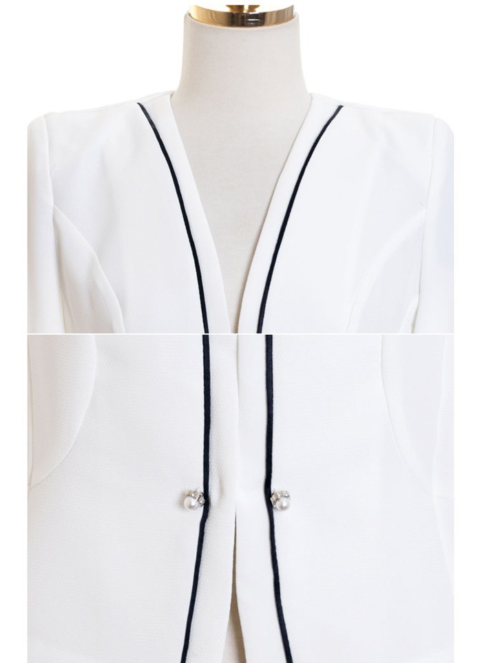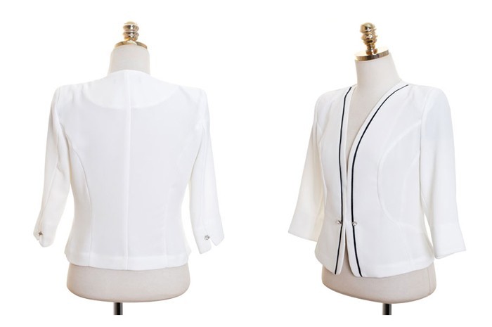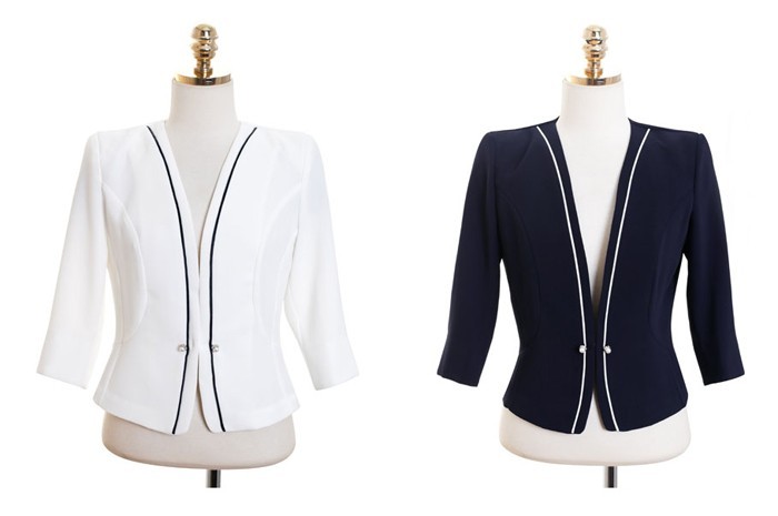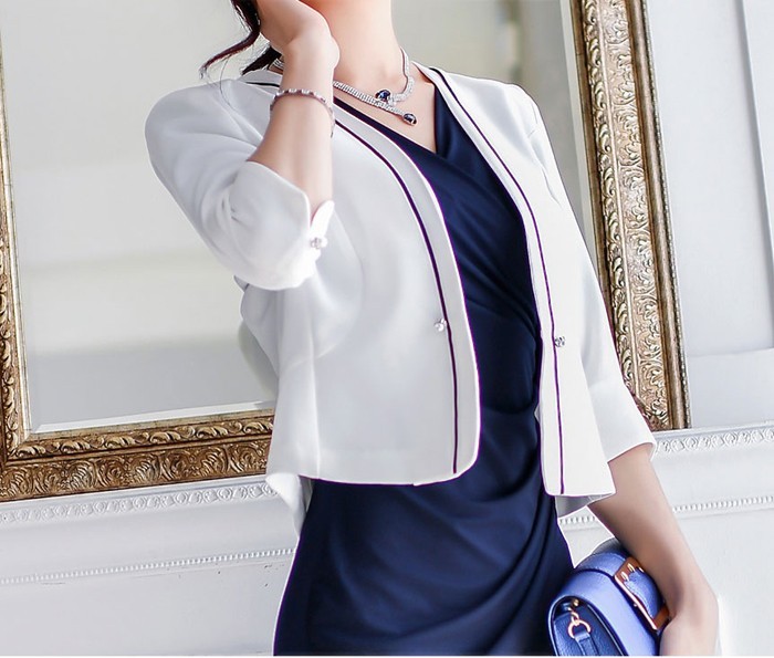 商品名:ジャケット ノーカラー ハーフ丈 無地 きれいめ