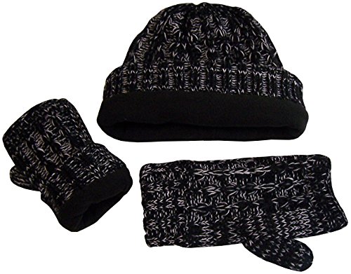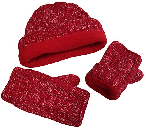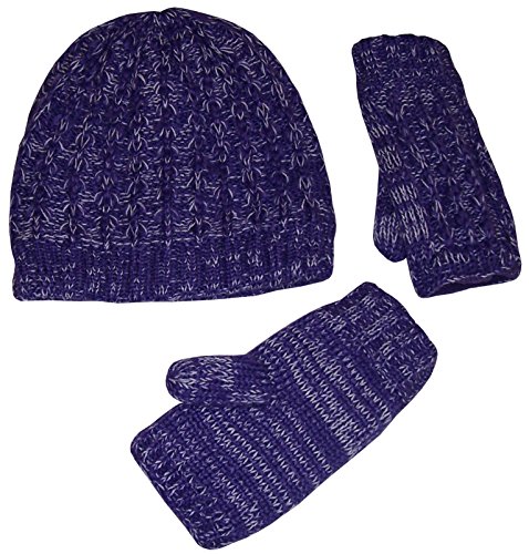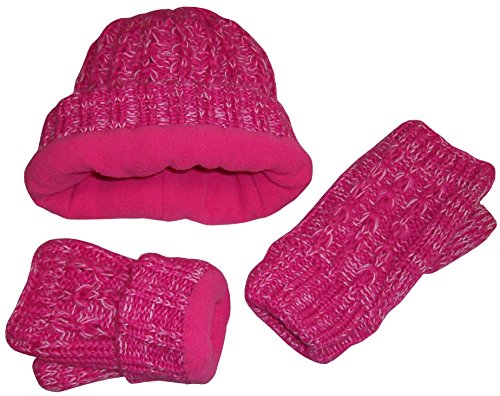 Binding : Apparel Product Description N'Ice Caps TM girls wrist glove and beanie cable knitted set with fleece lining. Heather yarn colors each have white stream for richer look. Great quality and comfort. Colors: black heather, fuchsia heather, purple heather, charcoal grey heather, light brown heather, red heather. Sizes: one size fits 4-12yrs, one size fits Teen/adults. Tested and approved as per CPSIA standards. Designed in the USA. 0