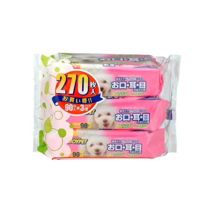 원본상품명:ジョイペット ウエットティッシュ お口耳目のまわり用 90枚入×3個パック 犬猫用