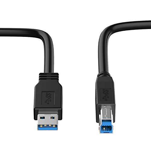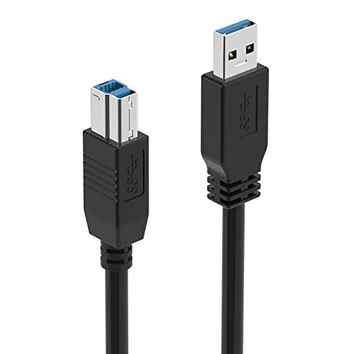High performance USB 3.0 type A to type B cable connects a desktop external hard drive, powered USB hub, USB docking station, 3.5 inch hard drive enclosure, or scanner and monitor equipped with type B USB 3.0 port to a computer for speedy file transfer