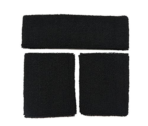 -. Title : Meta-U Wholesale 5 Sets of Black Thicken Cotton Sports Sweatbands-1Set Including 1Pce of Headband & 2Pcs of Wristbands
