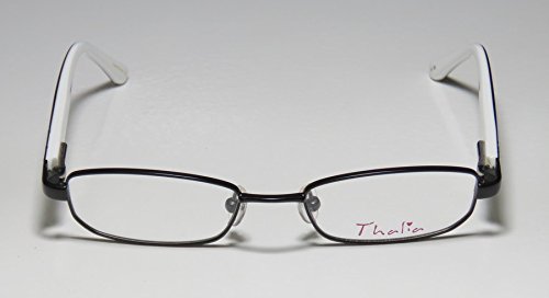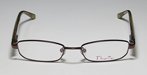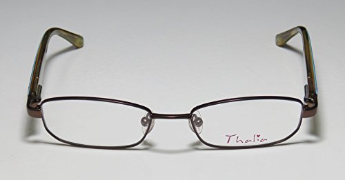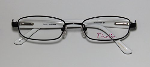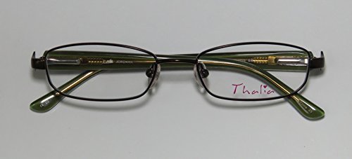 Brand: Thalia Style: Jordana Gender: womens Frame Type: full-rim Frame Material: metal plastic Case: original The frame is fully rx-able and can be fitted with prescription and/or tinted lenses at most optical stores. Please note that factory demo lenses have a logo stamped on them in ink. This frame provides comfortable fit and flatters a variety of face shapes. These eyeglasses are made of metal and high quality, durable acetate plastic. The frame has spring hinges. Spring hinge temples prevent you from stretching the fit of your glasses and ensure that they remain intact and not become loose or out of shape. Original case is included. These eyeglasses retail for $130.00 at upscale stores that carry designer frames. Save your money and get them here! The pictures cannot fully reflect the beauty of this piece of designer eyewear. These eyeglasses look even more elegant in real life. This is one of the most popular Thalia styles on the market right now. 0 |