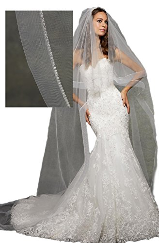 Passat 3 Colors Single-Tier 2M/3M Cathedral Wedding Bridal Veil Circular Veil Edged with Rhines...