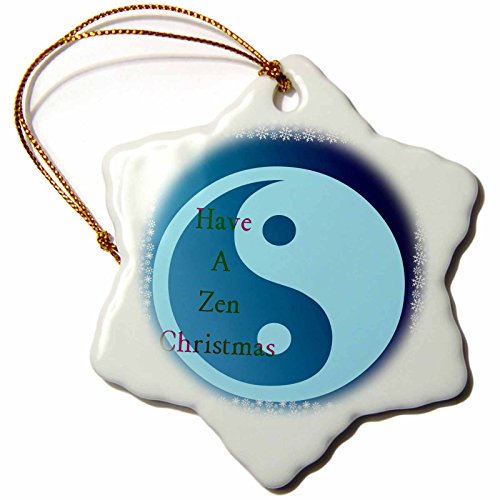 3dRose orn_53523_1 Zen Christmas Yin Yang Spiritual Art Snowflake Ornament, Porcelain, 3-Inch