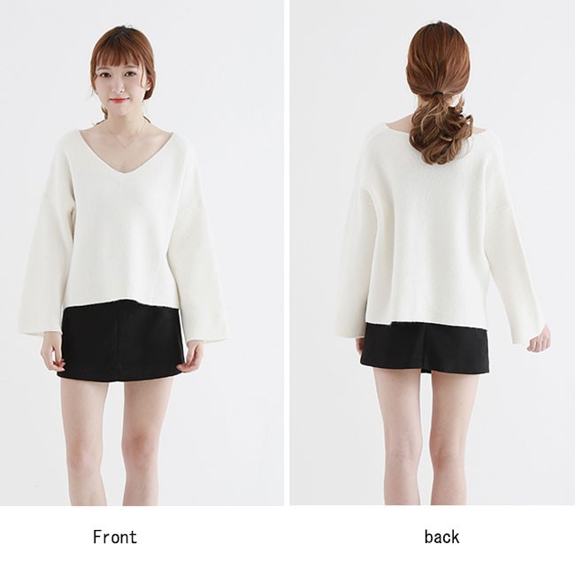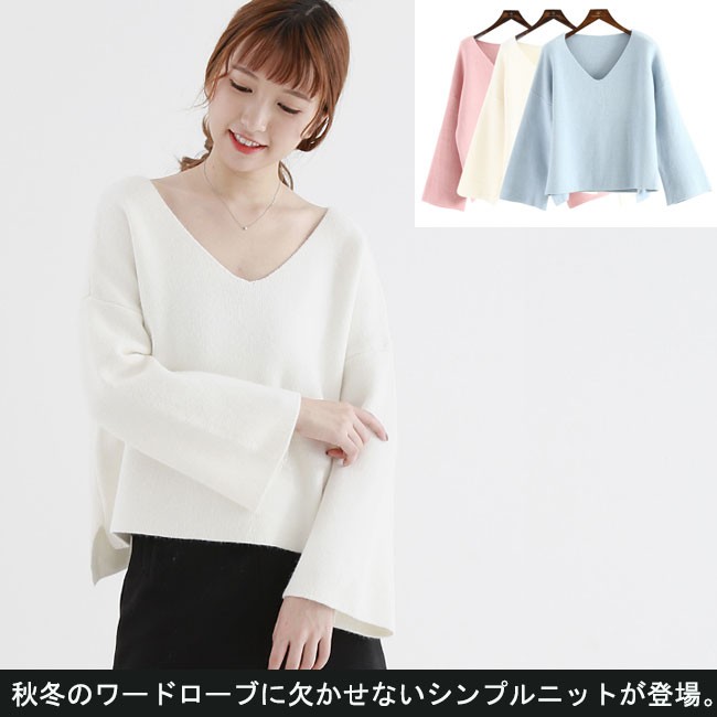 | 商品名 | ニットセーター Vネック フレア袖 ビッグシルエット オーバーサイズ 前後差ある ベーシックニット ゆるニット ゆるニット 秋のファッション 秋服 |
