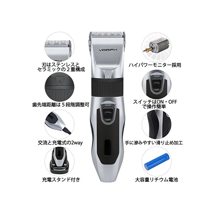 원본상품명:VOOPH ペット バリカン 犬猫 ペットクリッパ? 犬トリミングバリカン ペット用シェ?バ? 犬バリカン プロ用 ネコ用バリカン 全身カット 部分カット 足裏 犬ばりかん 高品質 充電式 電動バリカ