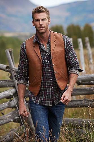 Studio : Overland Sheepskin Co. Publisher : Overland Sheepskin Co. Binding : Apparel Product Description A vintage, Olde West design that's built for service and made to last. Premium full-grain American bison leather gives the Bison Lapel Leather Vest an understated design that earns its merit both outdoors and in. A classic western cut with notch lapel and western yoke back, this robust vest accommodates urban mode or life on the trail with warmth and substance. Lined hand pockets and pocket-watch loop and buffalo nickel snap closures mark this champion design. And the brushed-cotton interior supplies two wallet pockets, one zip pocket, and dual concealed carry pockets and holster. 25" long. Made in Mexico. 0