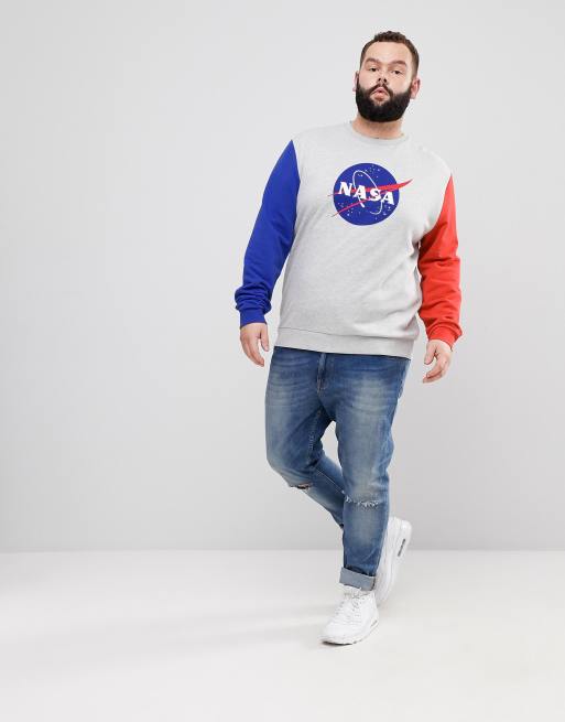 ASOS PLUS Sweatshirt With NASA Print And Contrast Sleeves