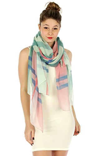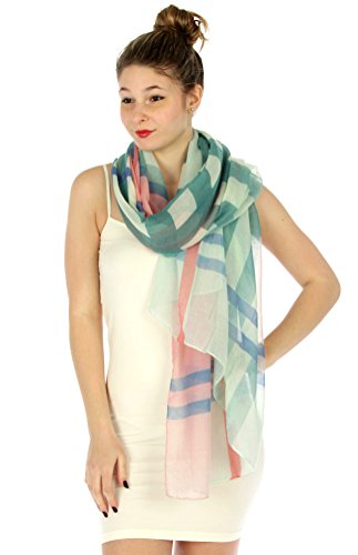 Title : Crown Spring Summer Soft Colorful Check Plaid Printed Oversize Scarf Shawl (Plaid Mint)