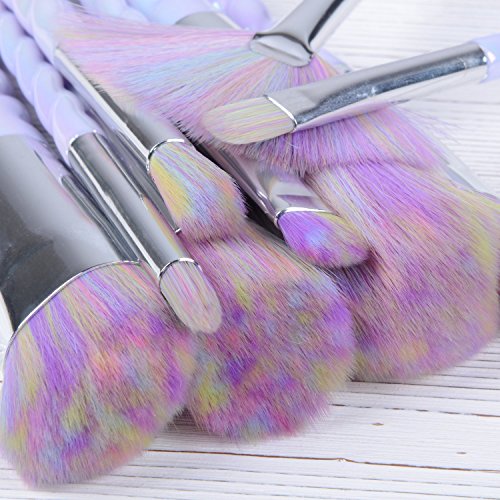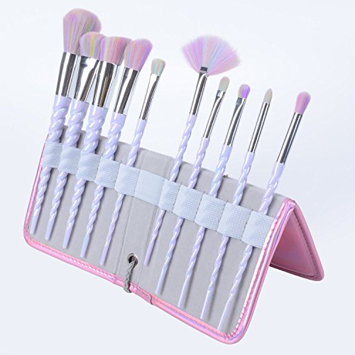 BYBOO 10Pcs Make up Brush Set Unicorn Design Rainbow Synthetic Hair Foundation Eyebrow Eyeliner Eyeshadow Blusher Face Lip Beauty Brushes with Carrying Case