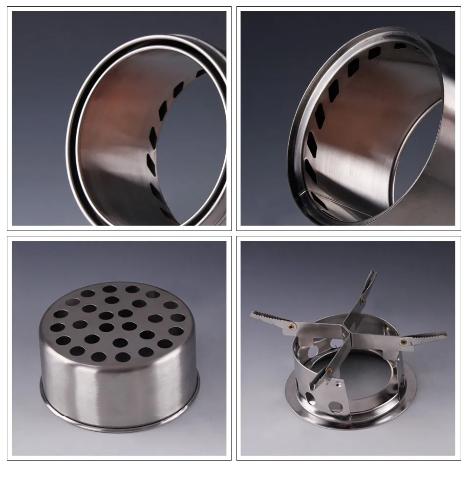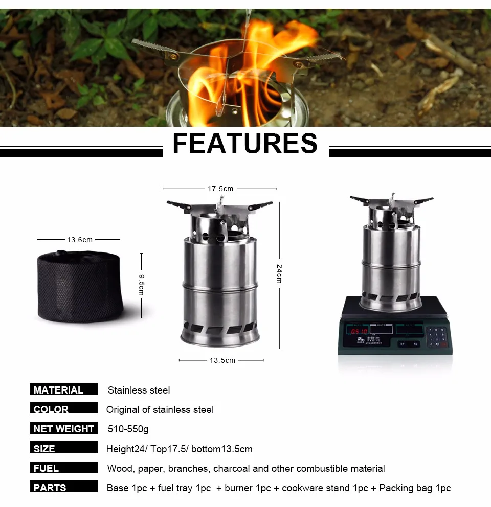 Folding Wood Gasifier Stainless Steel Solidified Alcohol Stove Backpacking Survival Firewood Burning