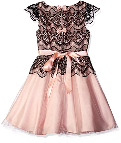 Rare Editions Big Girls' Lace Dress with Brooch Trim, Blush/Black, 16