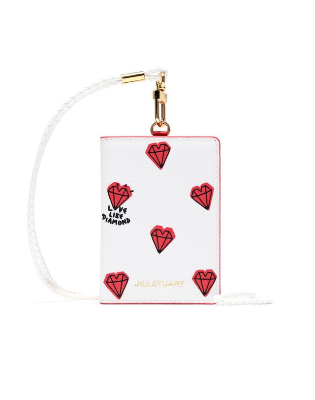 질 스튜어트 고유의 귀여운 하트 다이아몬드 패턴으로 포인트를 준 카드 지갑입니다. 내부 배색으로 걸리쉬한 느낌을 살렸습니다.