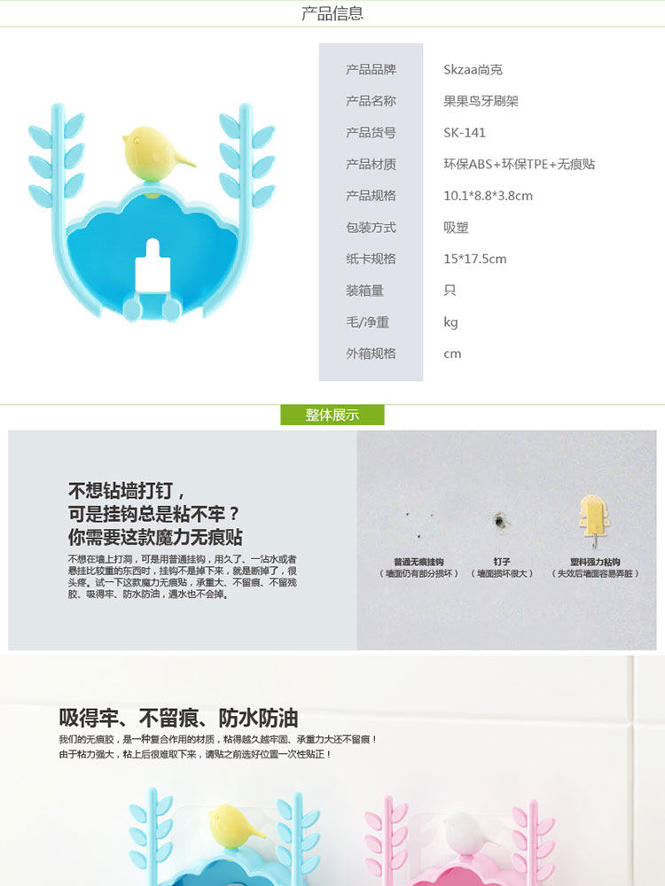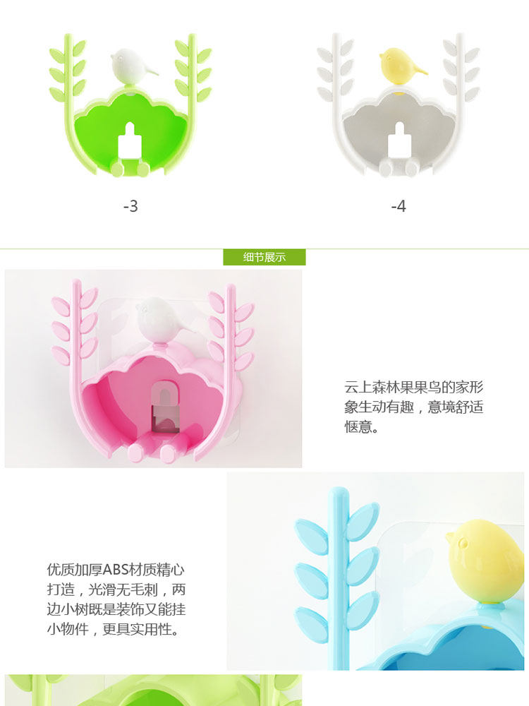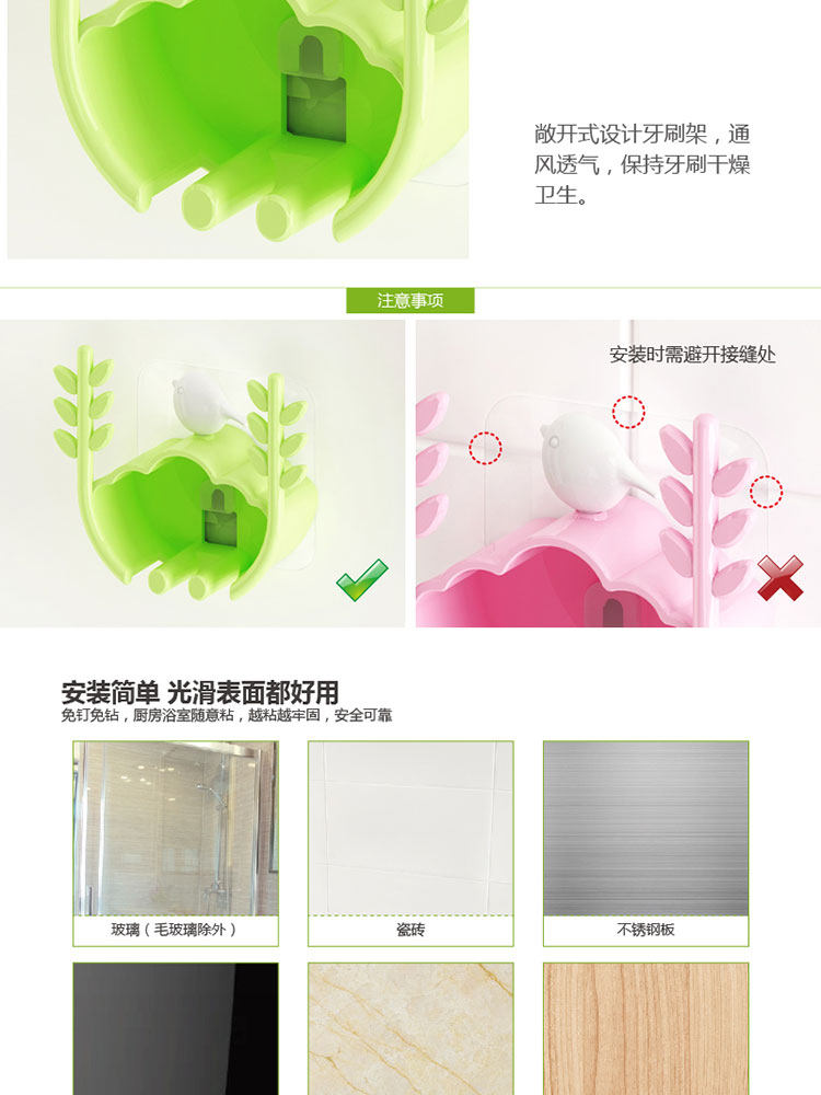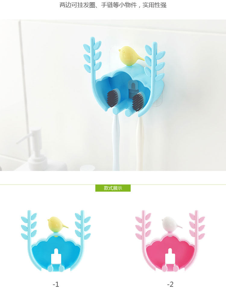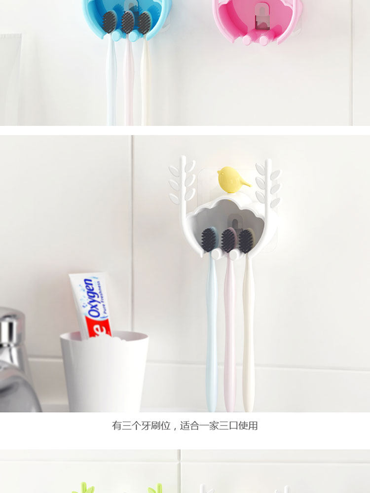 小鸟创意牙刷架三口卡通强力吸盘免打孔牙具座吸壁无痕收纳架