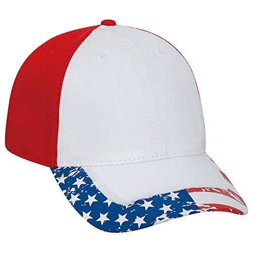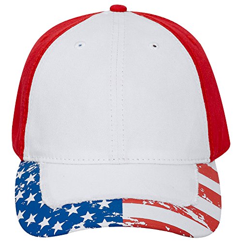 (Otto Caps)/Accessories/Hats/DIRECT FROM USA/Otto United States Flag Distressed Visor 6 Panel Low Profile Baseball Cap - Wht/Wht/Red