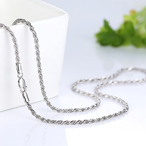 -. Feature : Material: 100% Real 925 Sterling Silver+Rhodium Plated / Nickel Free Chain / 2mm Rope Chain / Stylish & Great for Everyday Wear / Rhodium Finished to Prevent Tarnishing