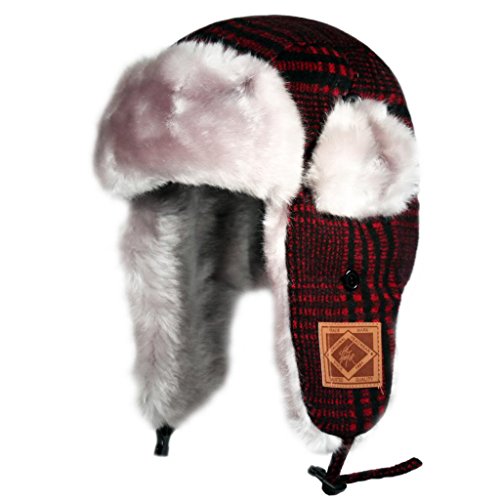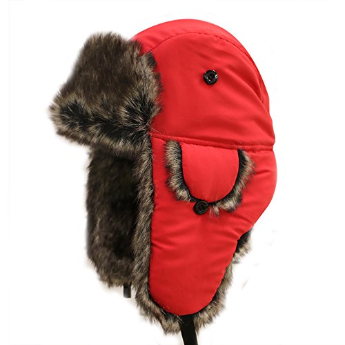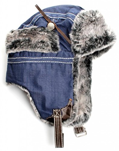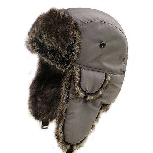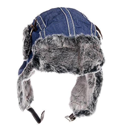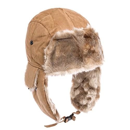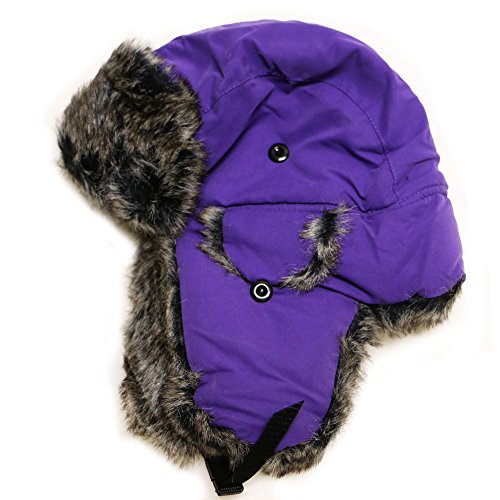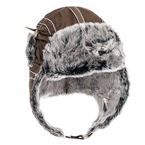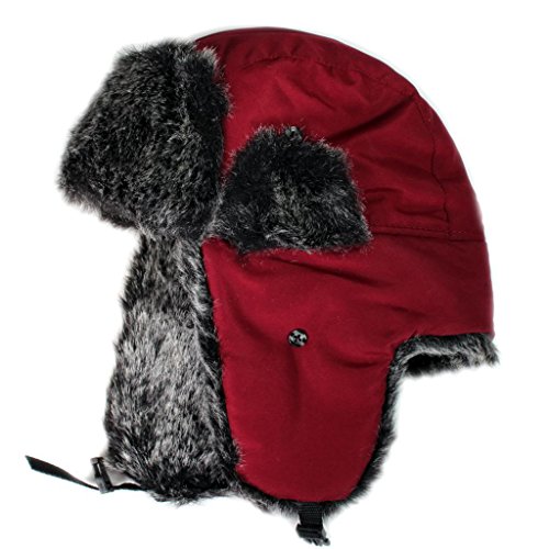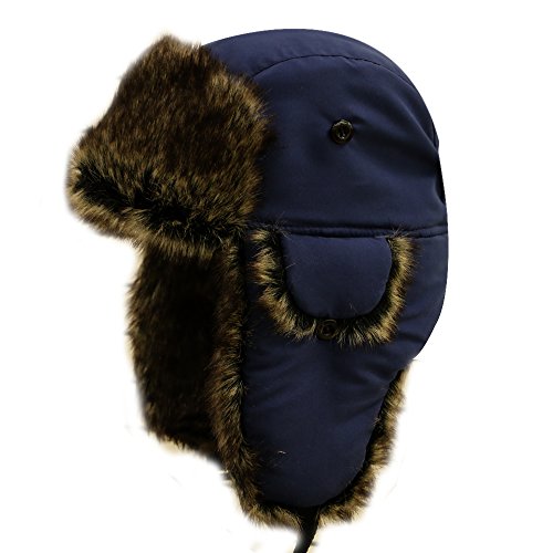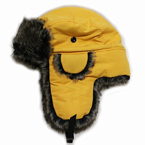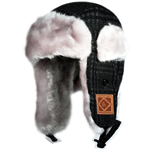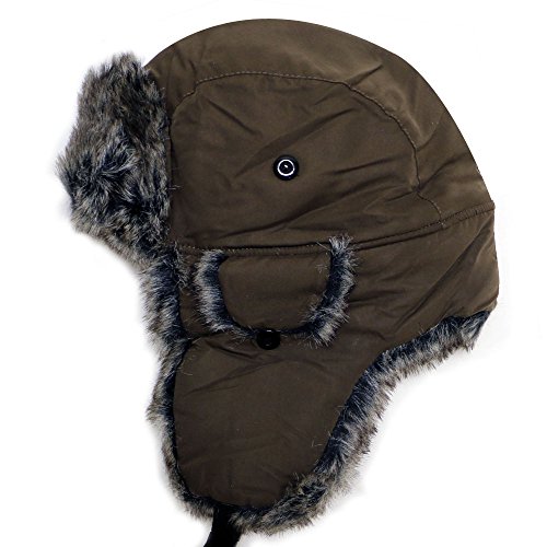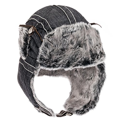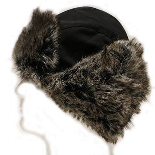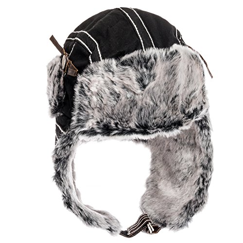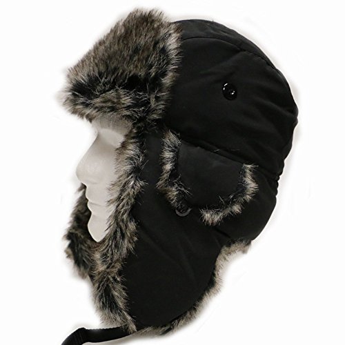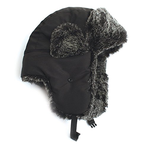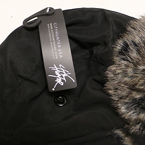 City Hunter Trapper Bomber Cap Hat Faux Fur,Black,One size
