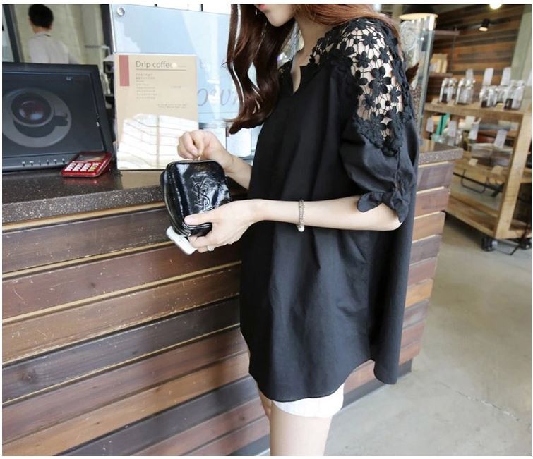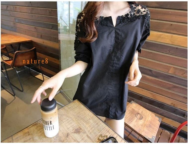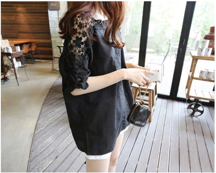 フラワーレースがたっぷりデザインされたシャツチュニック女性らしさを演出してくれるてくれる1枚