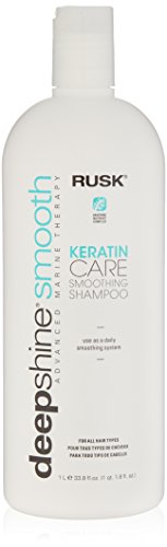 -. Feature : A color-safe, gentle cleansing shampoo / For all hair types, including anyone with chemically or color-treated hair / Keeps hair smooth and shiny, and restores elasticity to weak, dull hair / Natural keratin, vitamin E and marine botanicals help prevent breakage / Adds renewed strength to hair / Deep shine Smooth Keratin Care Smoothing Shampoo was launched by the design house of Rusk / 33.8 Ounce Shampoo / It is recommended for casual wear