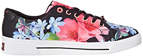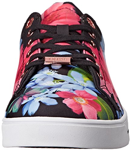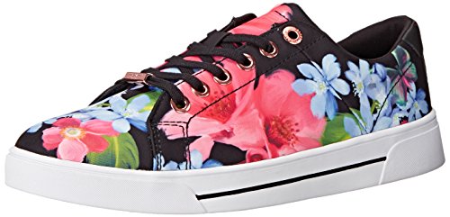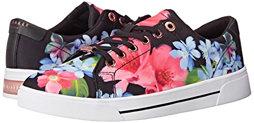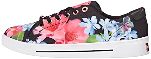 The lace up version of this floral print sneaker features a rose gold metallic branding plate on the heel counter as well as on the lace.