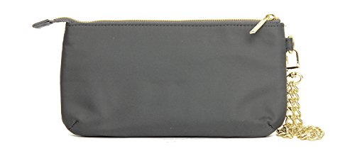 - Feature : Nylon with vegan leather / Top Zip Pouch / Get organized with 8 credit card slots / Removable vegan leather zipper pouch; Gold Metal Wirstlet Chain / 4.50"H, 8.87"L, 1"W / Imported / Ships immediately, 100% Satisfaction guarantee, No questions asked Return policy. Customer Service is our top priority.