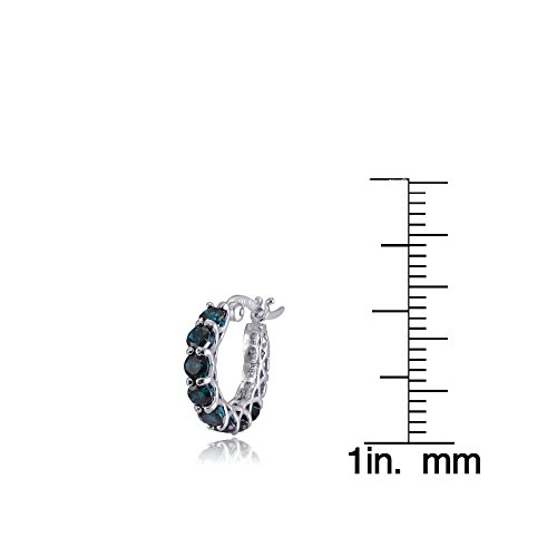 These graceful earrings features 3mm round-cut london blue topaz gemstones in a small, round, huggie earring. The earrings are crafted of 925 sterling silver and are secured by post with snap-down backs.