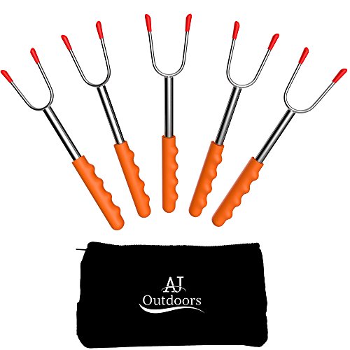 PROVIDING SAFETY WHILE HAVING FUN: These 45" extra-long extendable telescoping forks provide kids with more safety and distance from any kind of fire pit, and its length can be adjusted according to your needs. Furthermore, the prongs’ sharp tips are protected with rubber, making them perfect for your children to handle while avoiding unexpected accidents. The fork Retracting design to 11 inches and canvas pouch are convenient for camping trips