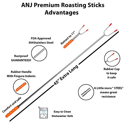 Dare to Compare-The Sturdiest Premium Marshmallow Roasting Sticks |The Most Durable and Highest Weight Resistance in the Market | 45'' Extendable Stainless Steel Telescoping Forks