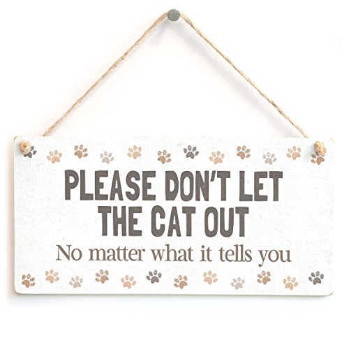 Meijiafei PLEASE DON’T LET THE CAT OUT No matter what it tells you - Cute Indoor House Cat Home Accessory Gift Sign 10"x5"