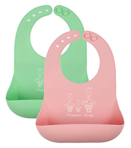 -. Title : P.R.Ippie Soft Silicone Baby Bib, Set of 2 ( Pink & Green ) - New and Improved Design