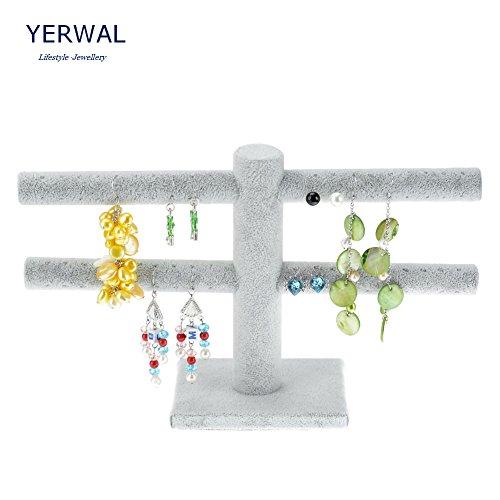 Earring Rack, Yerwal 2 Tiers Earring Rack T-Bar Display Earrings Stand Storage Organizer(White)