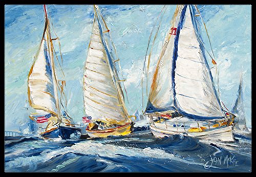 Caroline's Treasures Roll Me Over Sailboats Indoor or Outdoor Mat, 18" x 27", Multicolor
