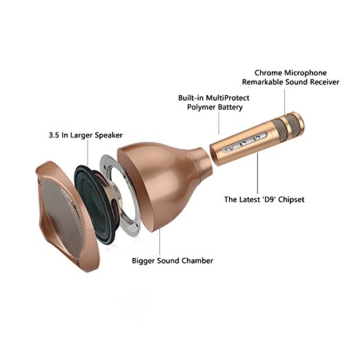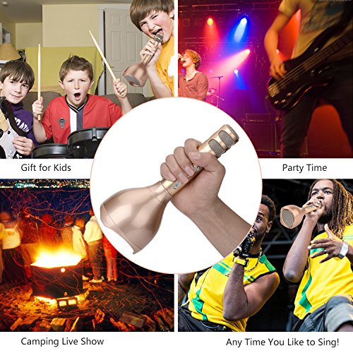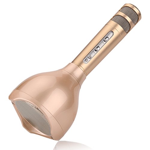 Portable Wireless Karaoke Microphone, Bluetooth Speaker Player for Music Playing Singing at Home KTV Party Travel Outdoor, Adapt to Apple iPhone Android Smart Phone PC Apps (Gold)