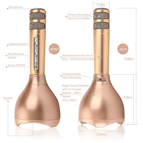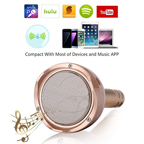 【Multifunction Design】Compatible with iPhone ,iPad, Android phone & tablets, PC, and most of music APP; a Wireless Karaoke Microphone for singing,recording,or as a Bluetooth Speaker for listening music,interviews, broadcasting,etc; widely use in home ,KTV, party, Car,outdoor activities ,making live vocal concert whenever and wherever possible.