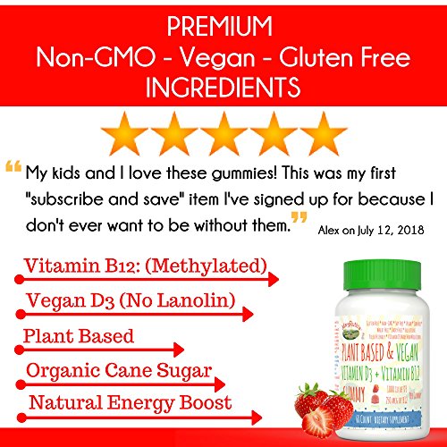 ✅ VEGAN Vitamin D3 + B12 (Methylcobalamin) Gummies with DELICIOUS flavor: Strawberry! Non-GMO, Vegan, PALEO Friendly, and from Non-GMO Vegan Lichen!