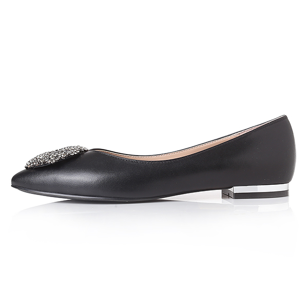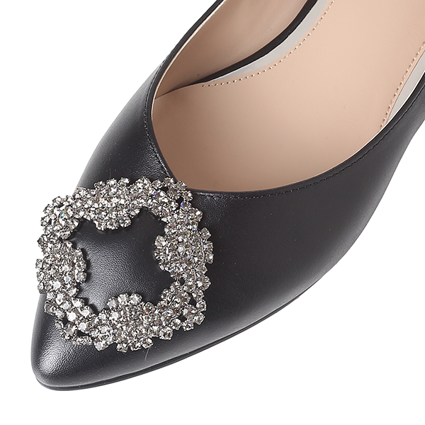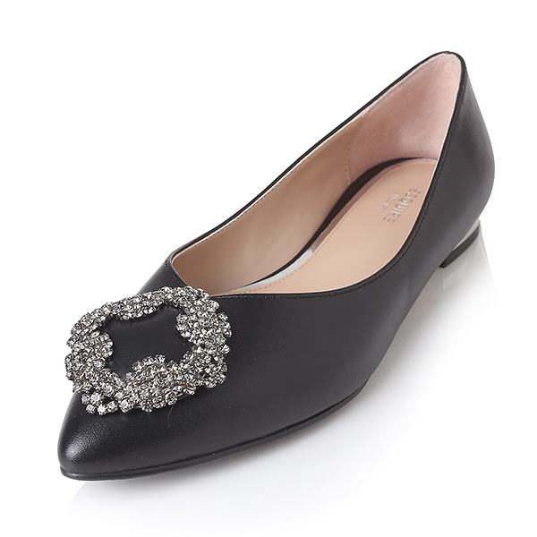잔잔한 플라워를 모티브로한 스퀘어쥬얼리장식이 포인트인 드레스 플랫슈즈. 멀티칼라의 스톤이 포인트슈즈로 매칭하기 좋은 아이템.