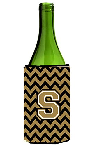 Letter S Chevron Black and Gold Wine Bottle Beverage Insulator Hugger CJ1050-SLITERK